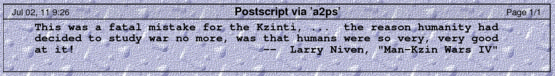 请注意,在最后一个示例中,任何过长的文本行(超出页面宽度)都会溢出页面,并且不会“换行”。这将有效地裁剪并破坏行的末尾。此外,如果行数过多,“Postscript/PDF - 预格式化文本和图形输入